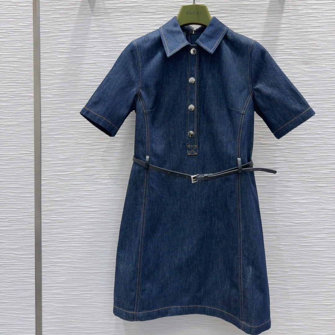 Gucci 25 Denim Shirt Dress Blue Cotton