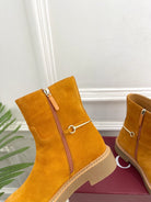 Gucci 25𝐬𝐬 horsebit ankle boots mustard yellow suede 435377
