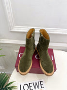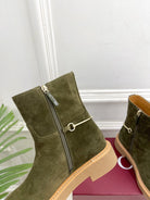 Gucci 25𝐬𝐬 horsebit ankle boots olive green suede 435378