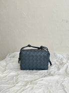 • Mini intrecciato leather crossbody bag with knotted metallic embellishment