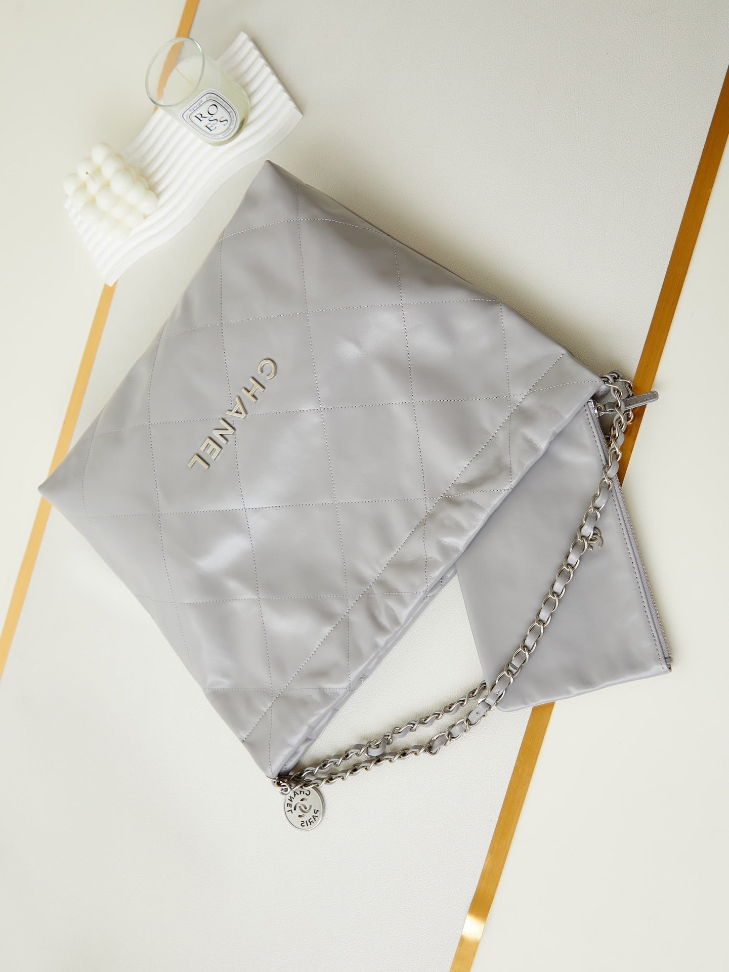 cc 22 hobo grey calfskin silver hardware