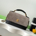 CC 25A Flap Bag 29cm Grey Suede Black Calfskin