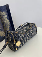 CD East-West cylindrical bag 27 blue jacquard canvas