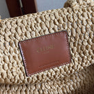 Celine Cabas Thais Handbag Beige mix Brown Plant Material And Cow Leather