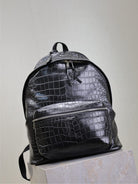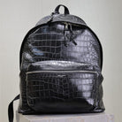 CITY BACKPACK 38 IN BLACK CROCODILE EMBOSSED CALFSKIN