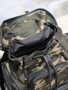 CITY MULTI-POCKET BACKPACK 42 IN CAMOUFLAGE PATTERN NYLON AND BLACK CALFSKIN