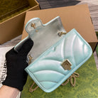 GG MARMONT 16 MINI SHOULDER BAG BLUE IRIDESCENT CALFSKIN