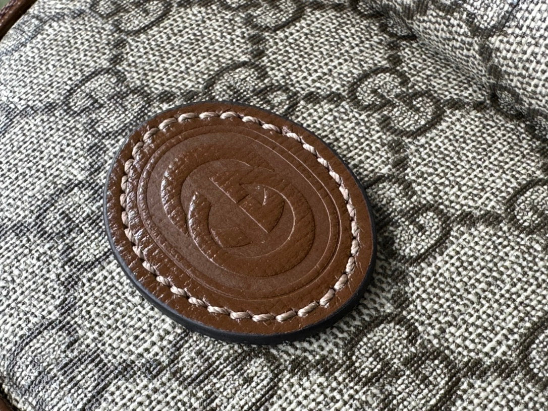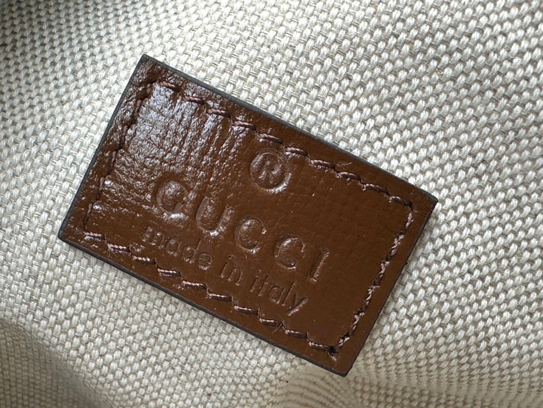 GG MULTI-FUNCTION MINI 19 BACKPACK IN BEIGE AND BROWN CANVAS