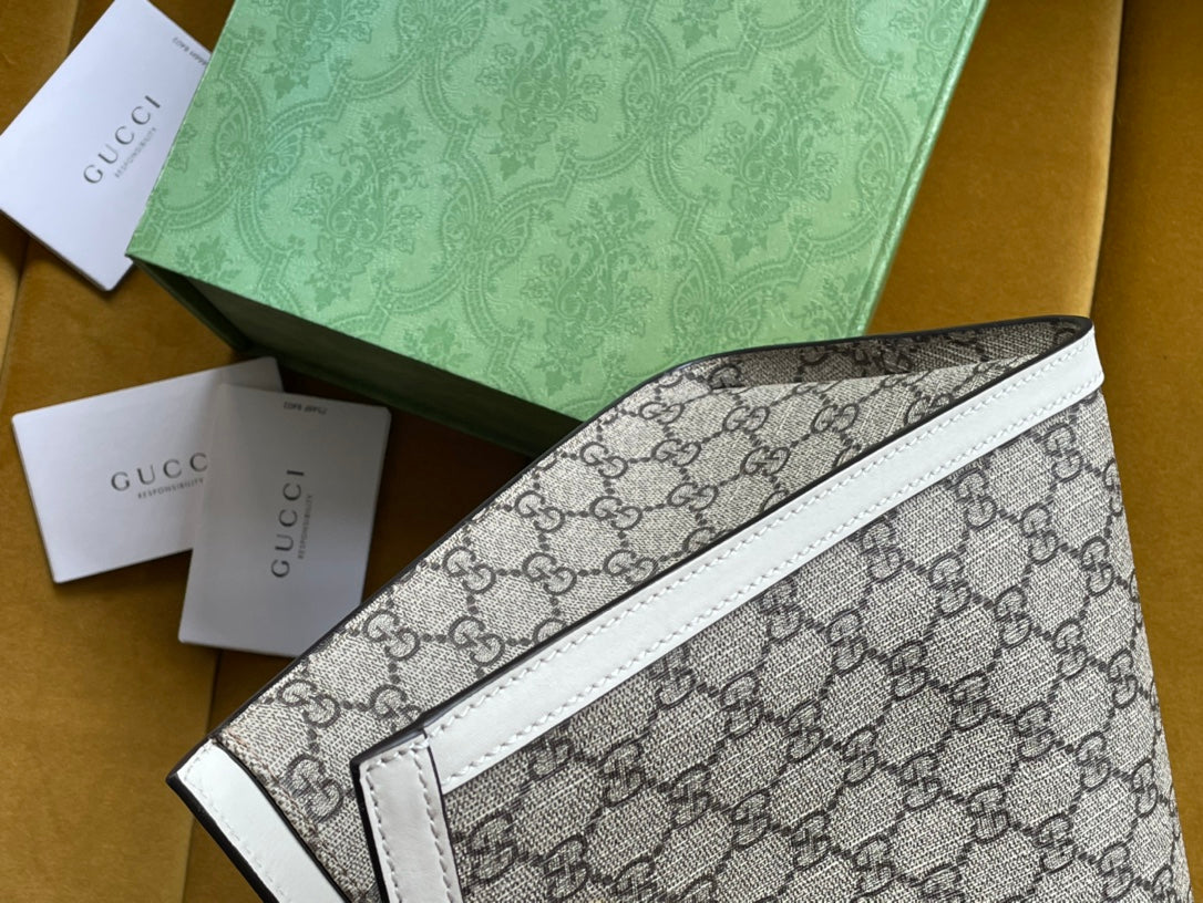GG PADLOCK LARGE 35 SHOULDER BAG BEIGE CANVAS AND WHITE CALFSKIN