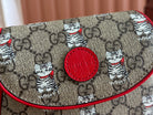 Gucci Cat Print Shoulder Bag White Red Beige Canvas 239660