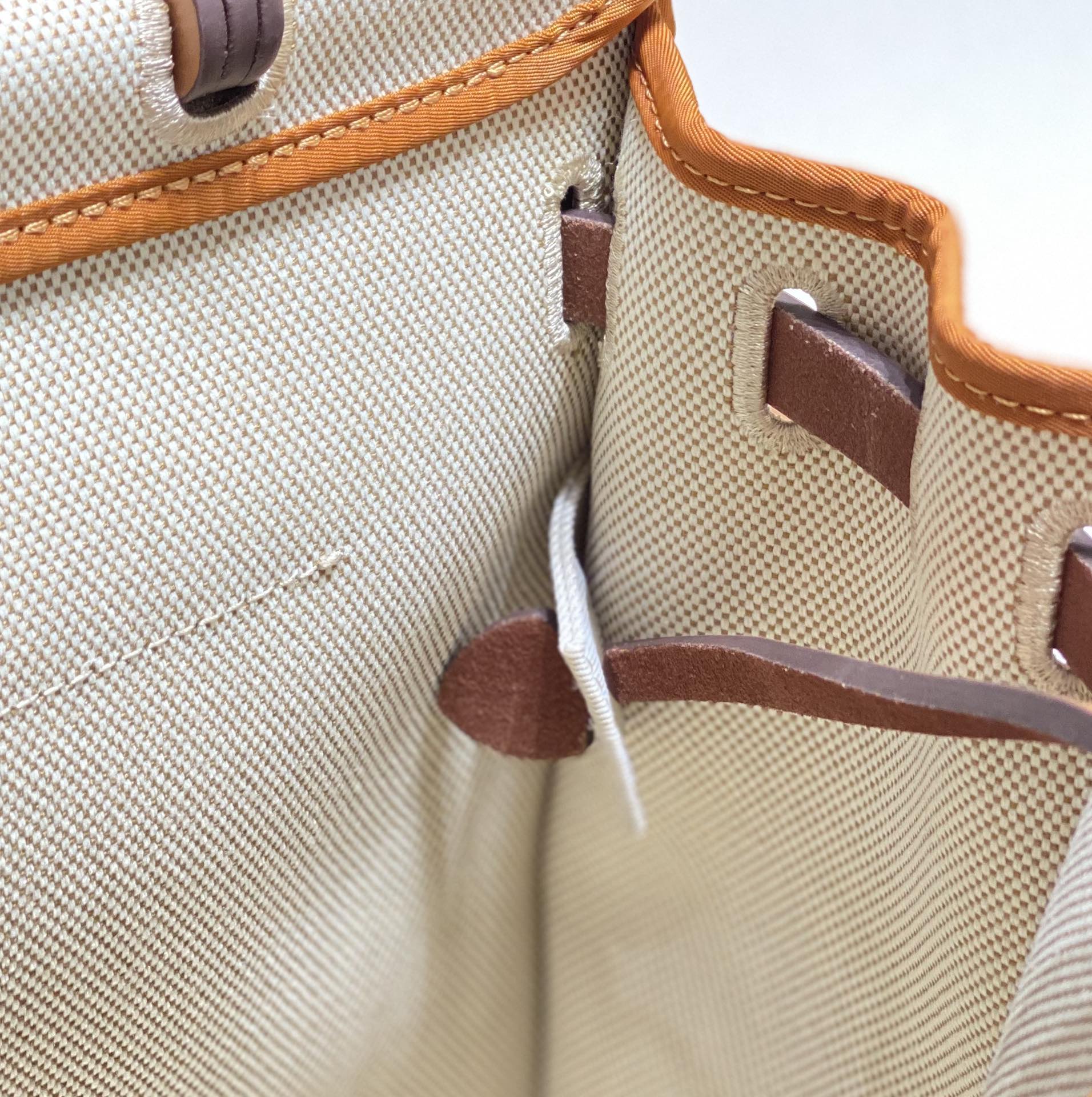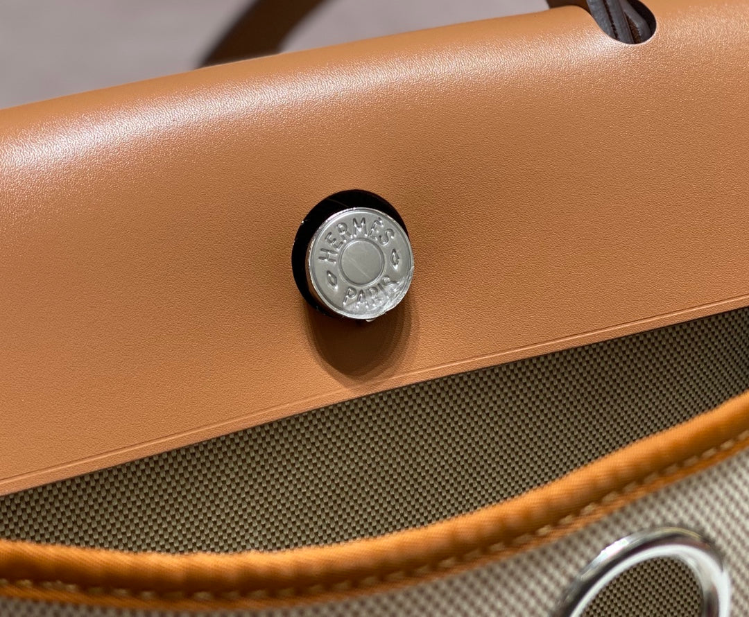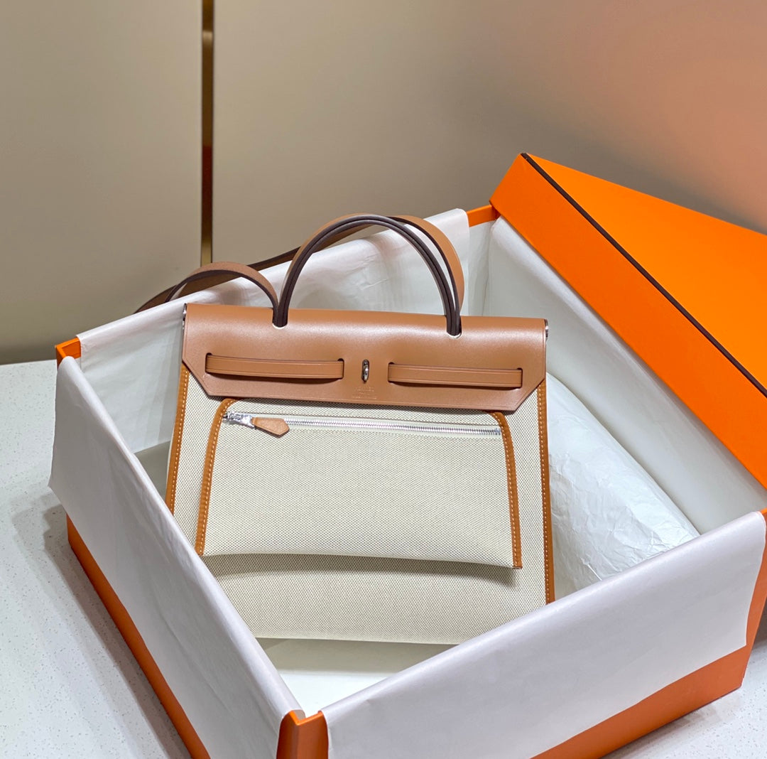 Herbag 31 Toile White Canvas Gold Cowhide Leather
