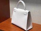 HM KELLY 25CM PURE WHITE EPSOM LEATHER SILVER HARDWARE