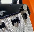 HM Pegase Pop Herbag Zip 31 White Blue Canvas Black Cowhide Leather