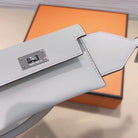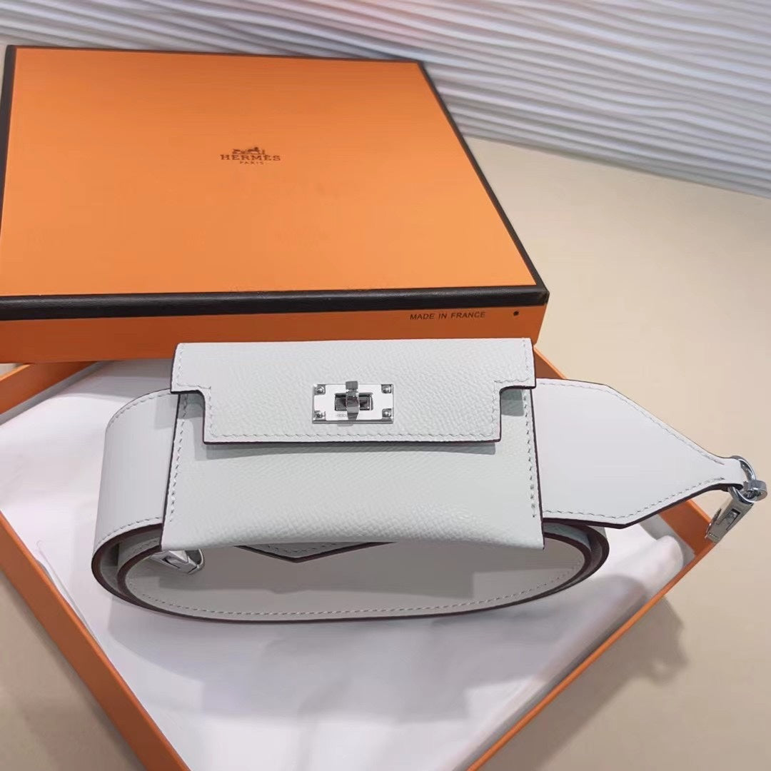 kelly pocket 50mm white epsom silver hardware shoulder strap