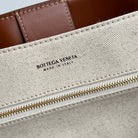 LARGE ANDIAMO 42 IN WHITE BROWN CALFSKIN AND CANVAS