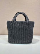 LARGE CROCHET TOTE BAG 47 IN BLACK MIX YELLOW RAFFIA