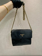 LARGE QUILTED FLAP BAG 23 IN BLACK RE-NYLON FABRIC GOLD CHAIN