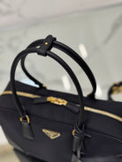 LARGE TOP HANDLE BAG 35 IN BLACK NYLON AND CALFSKIN TRIM