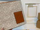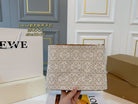 LOE 28 CLUTCH BAG IN BEIGE ANAGRAM JACQUARD