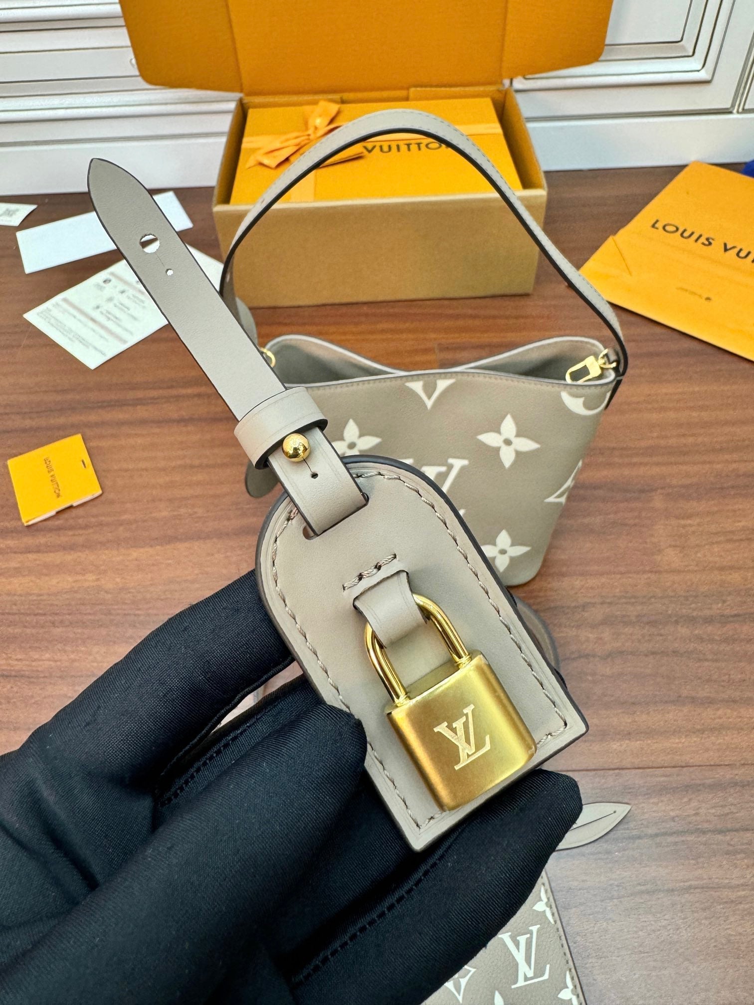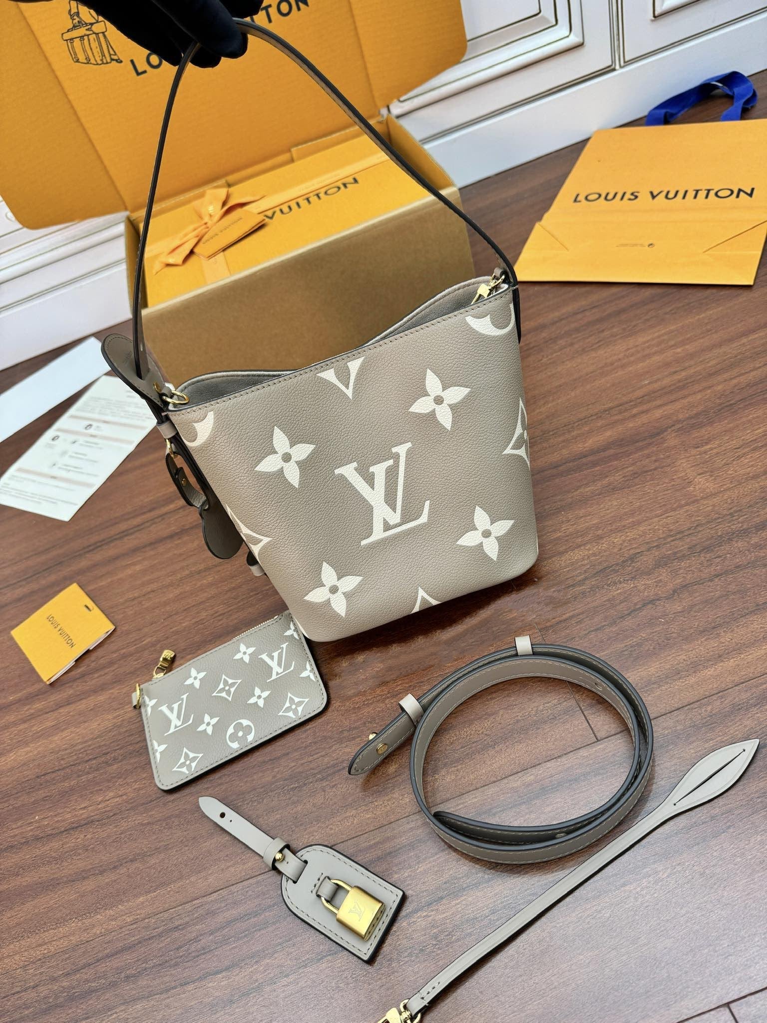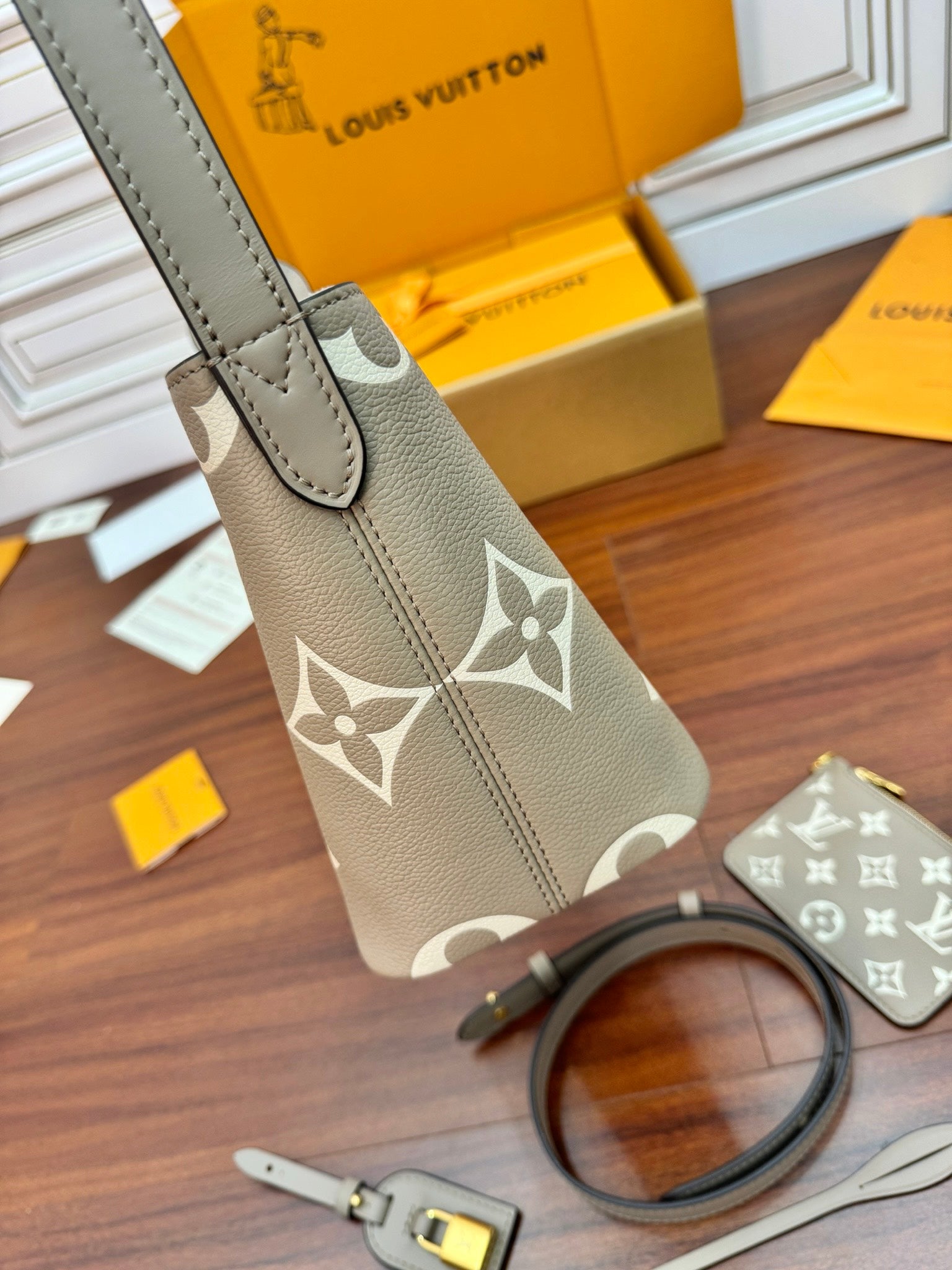 LV Bucket Bag 16cm Khaki Nude Monogram Canvas 330403