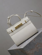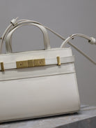 MANHATTAN SMALL TOP HANDLE BAG 21 IN WHITE CALFSKIN GOLD HARDWARE