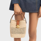 Medium Louise Bucket 24cm Brown Calfskin Beige Raffia