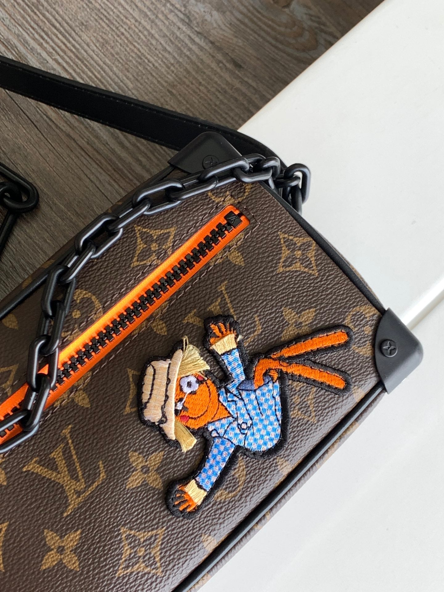 MINI SOFT TRUNK 18 IN BROWN MONOGRAM CANVAS WITH EMBROIDERED ANIMATED CHARACTER