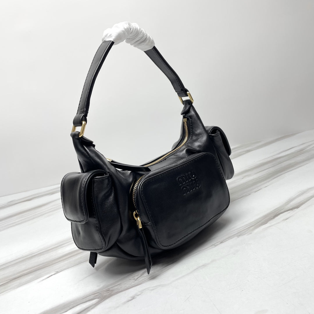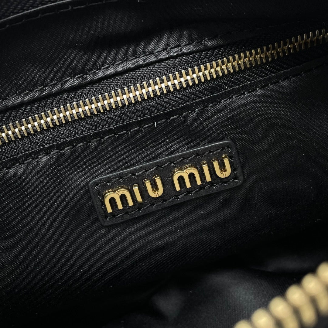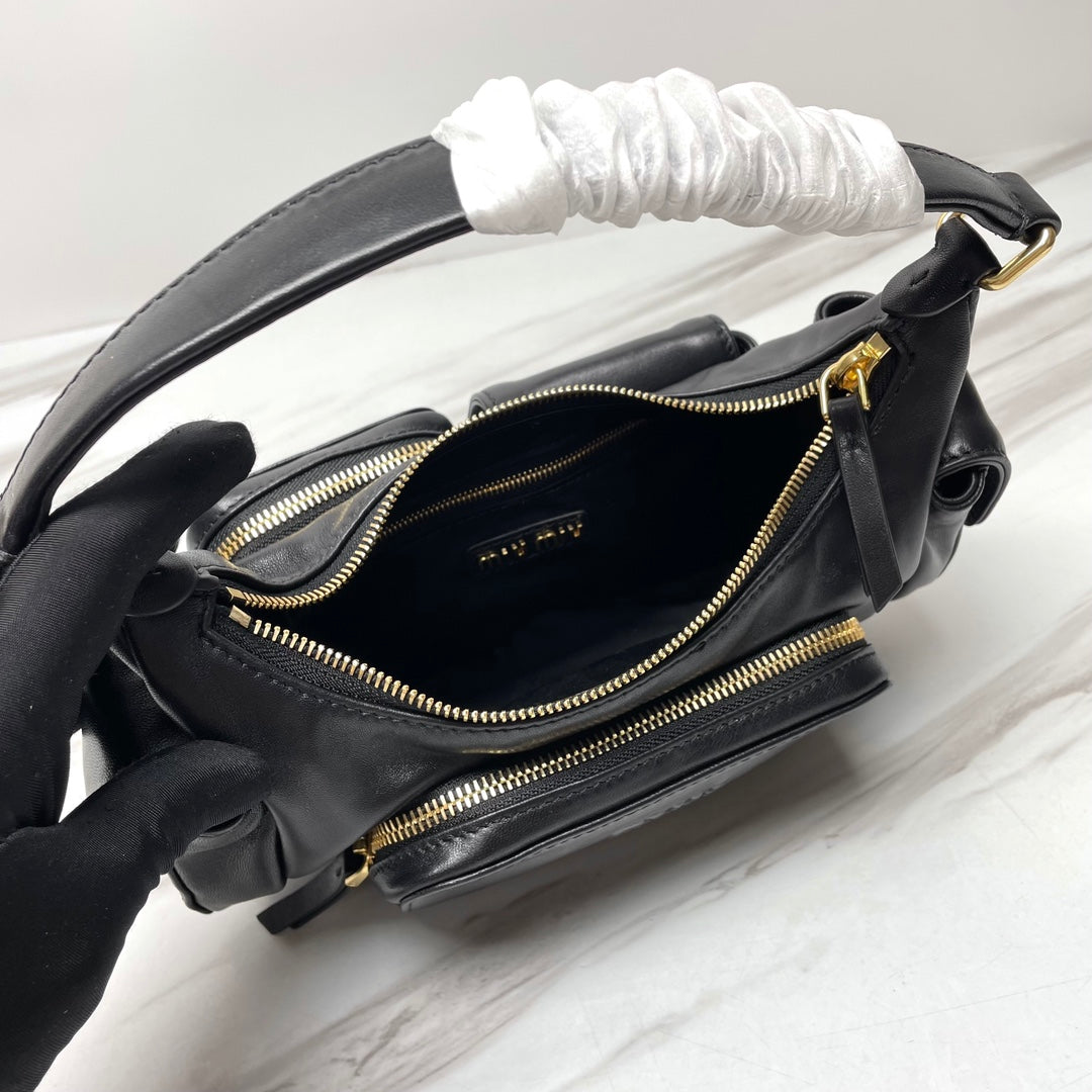MIU POCKET 21CM SHOULDER BAG BLACK CALFSKIN