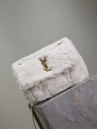 NIKI MEDIUM 28 IN WHITE RABBIT FUR GOLD HARDWARE