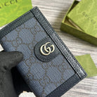 OPHIDIA GG 12 CARD CASE DARK BLUE CANVAS AND BLACK CALFSKIN