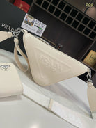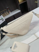 PRA TRIANGLE 27 SHOULDER BAG IN WHITE CALFSKIN WITH STRAP