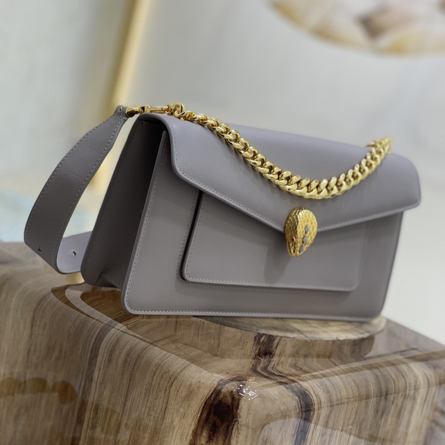 SERPENT EAST-WEST MAXI CHAIN SHOULDER 28CM BAG GREY CALFSKIN