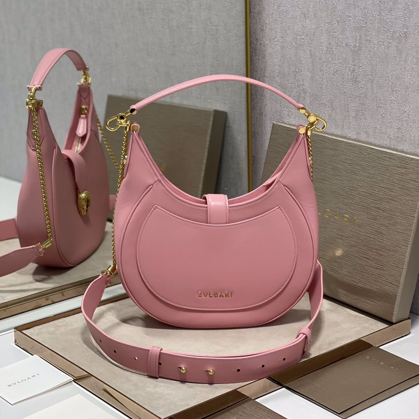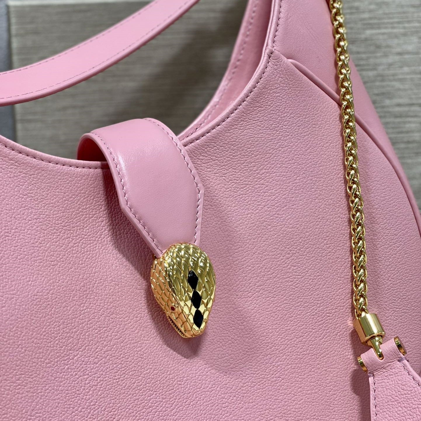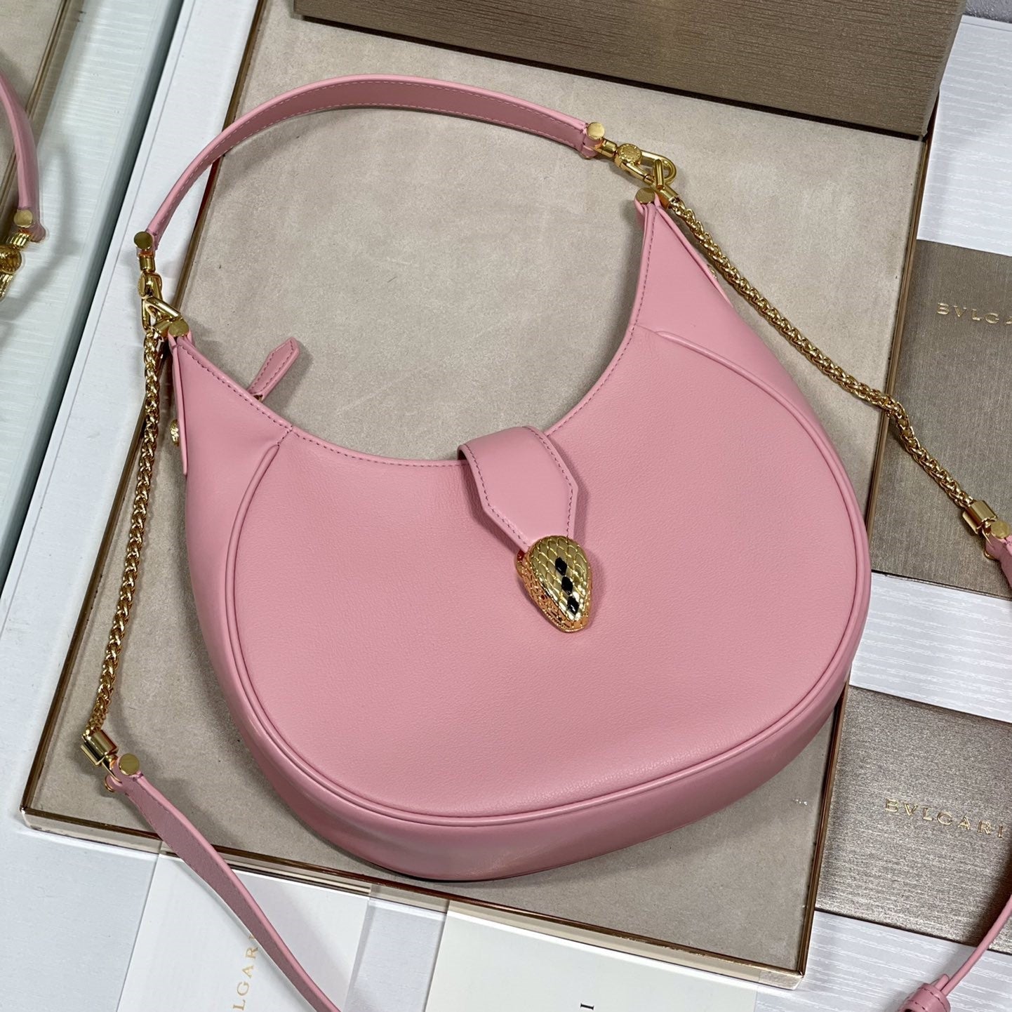 SERPENT ELLIPSE SHOULDER AND CROSSBODY 25.5CM PINK CALFSKIN