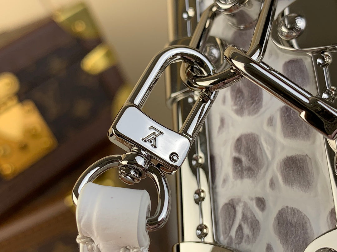 SLIM TRUNK 23 IN WHITE CROCODILE PATTERN CALFSKIN SILVER HARDWARE