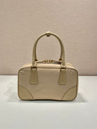 SMALL TOP HANDLE BAG 25 IN DRIED MOSS NYLON AND CALFSKIN TRIM