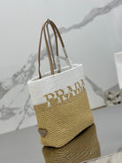 SMALL TOTE BAG 27 IN WHITE MIX BEIGE RAFFIA AND BROWN CALFSKIN HANDLE