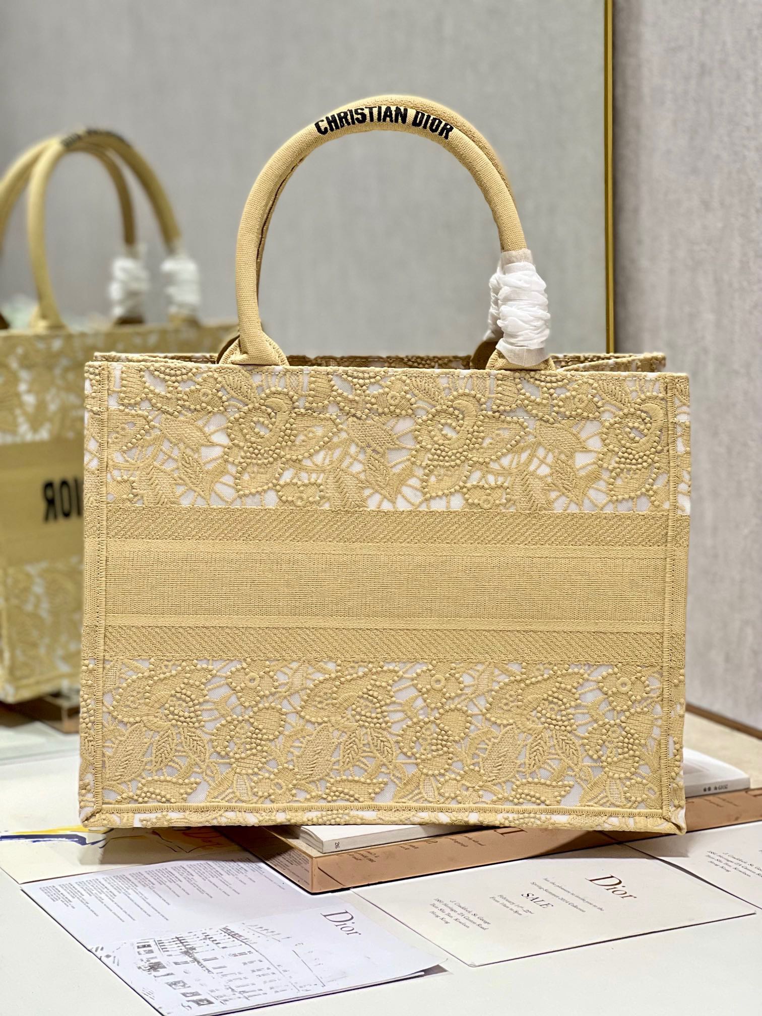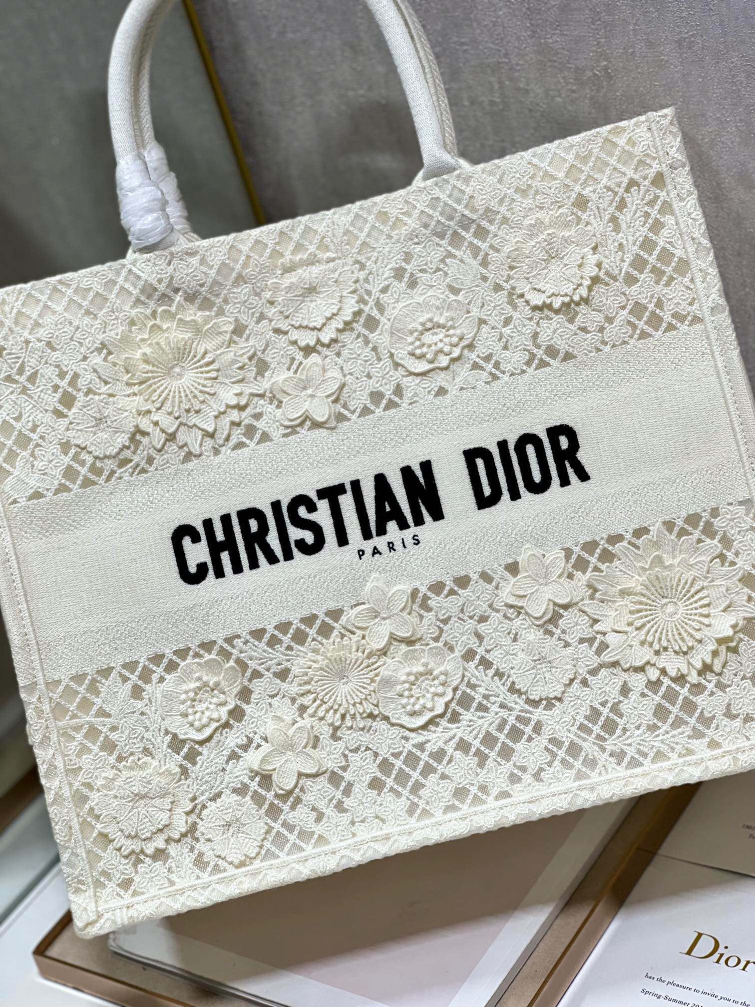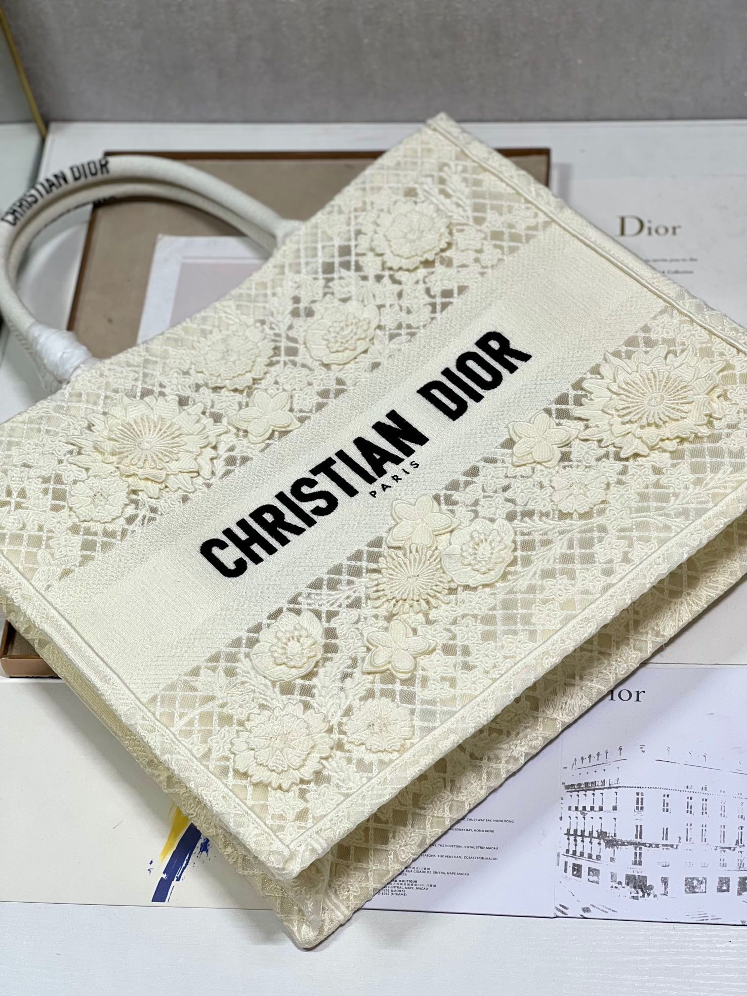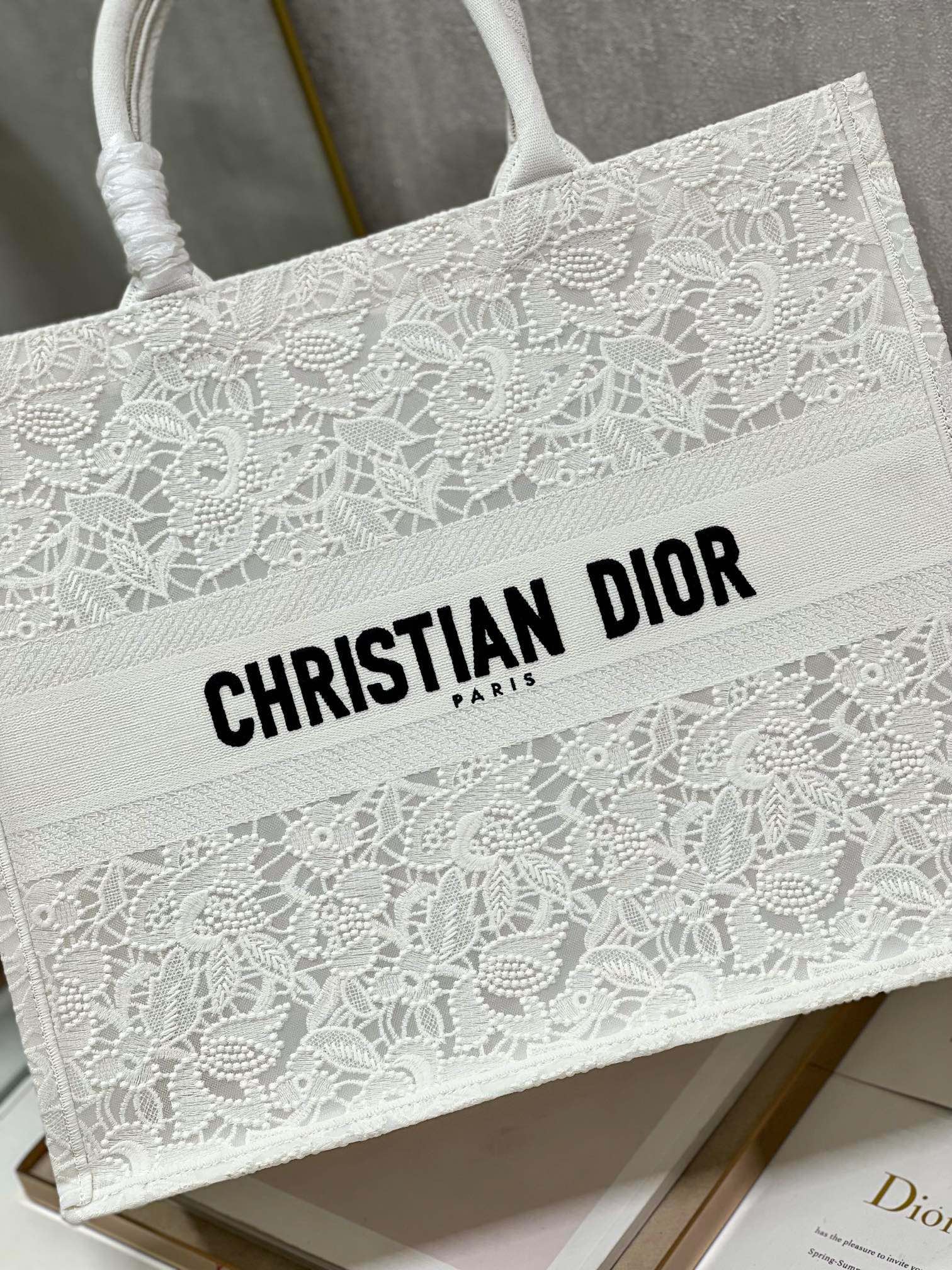 CD Lace White Book Tote 42cm Bag Canvas 336570