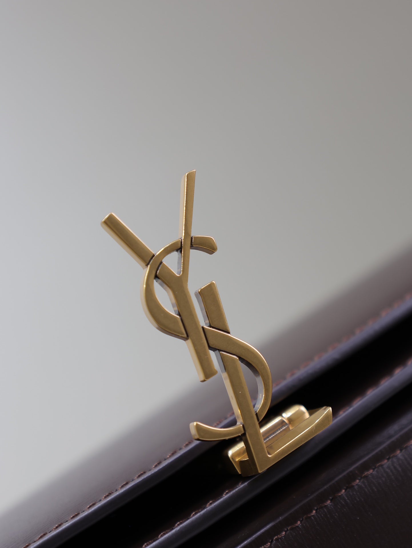 LE 5 À 7 MINI BAG 19 IN CHOCOLATE PATENT CALFSKIN GOLD LOGO