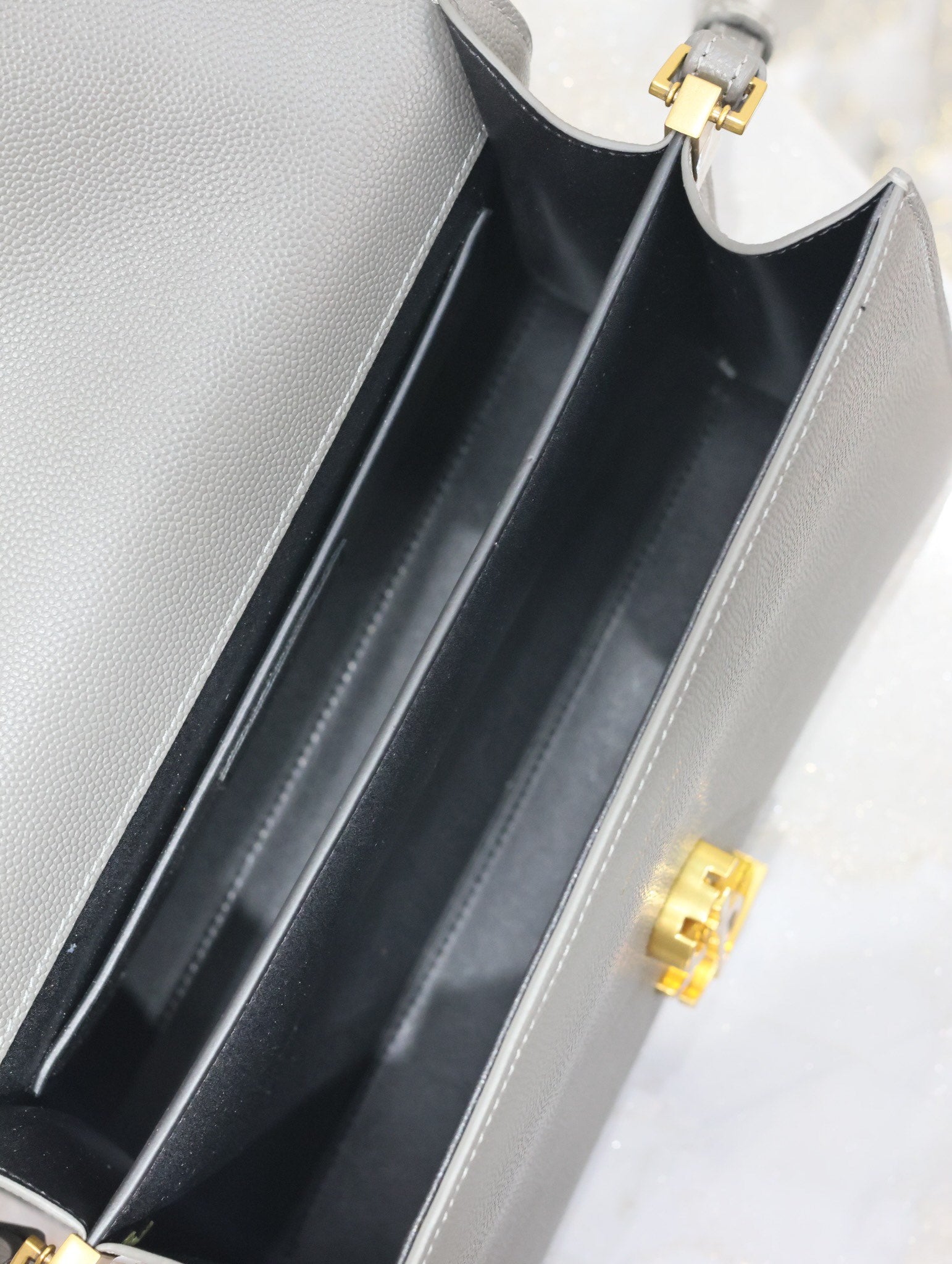 CASSANDRA MINI TOP HANDLE BAG 20 IN GRAY CALFSKIN GOLD HARDWARE