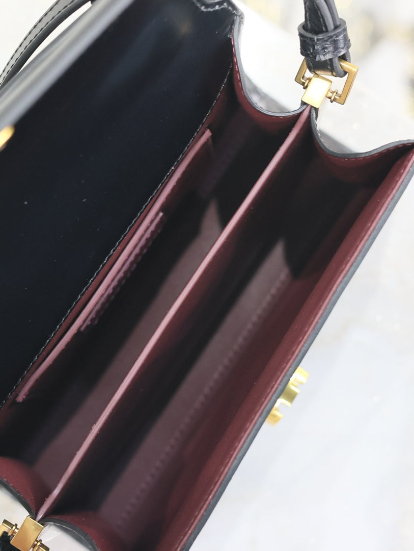 CASSANDRA MINI TOP HANDLE BAG 20 IN BLACK CALFSKIN GOLD HARDWARE