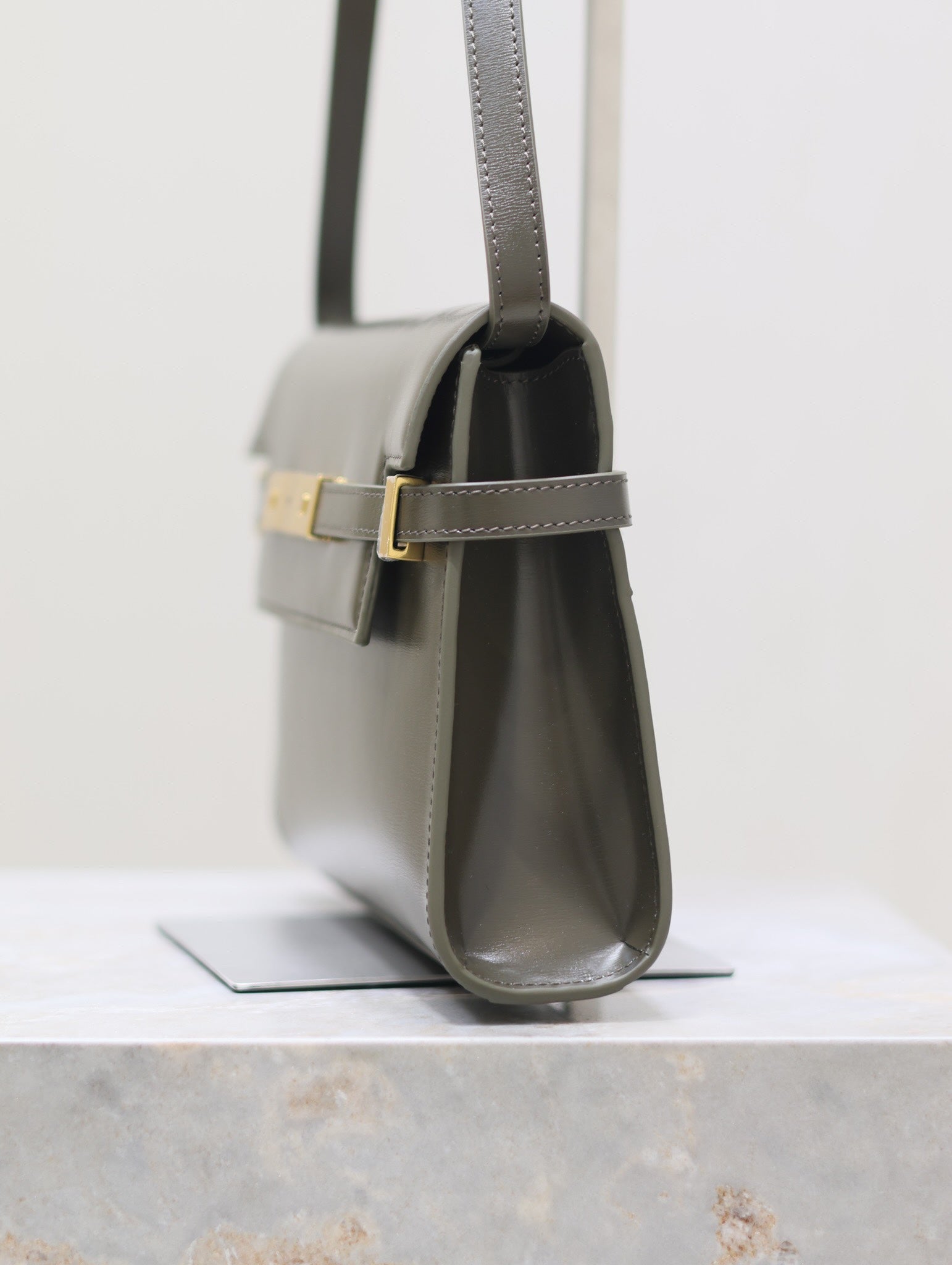 CASSANDRA TOP HANDLE BAG 24 IN GRAY CALFSKIN GOLD HARDWARE