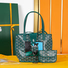 ANJOU MINI BAG 20 IN GREEN GOYARDINE CANVAS AND CALFSKIN WITH CARTOON PATCH