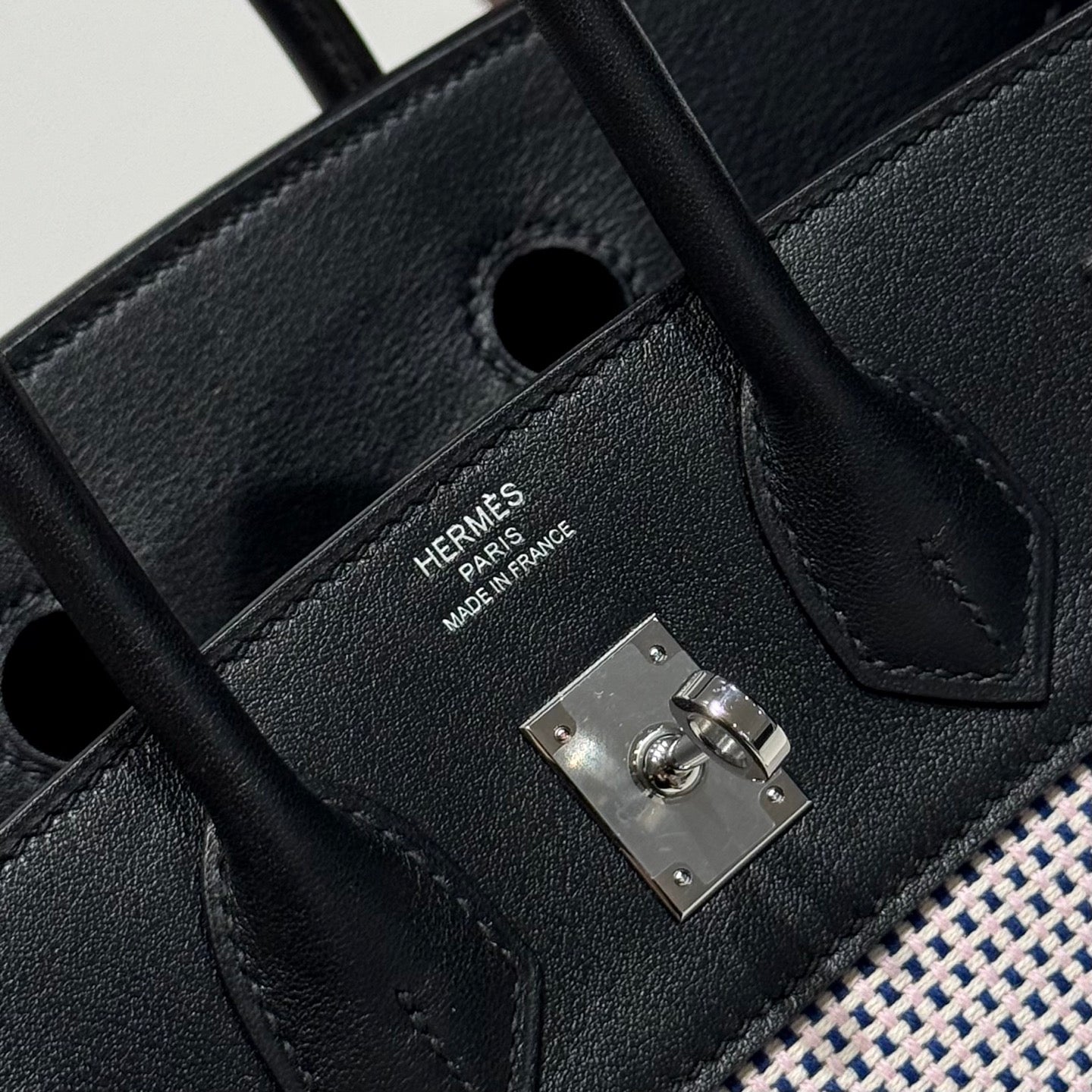 HM Birkin 25cm Black Swift Dark Grey Canvas Silver Hardware