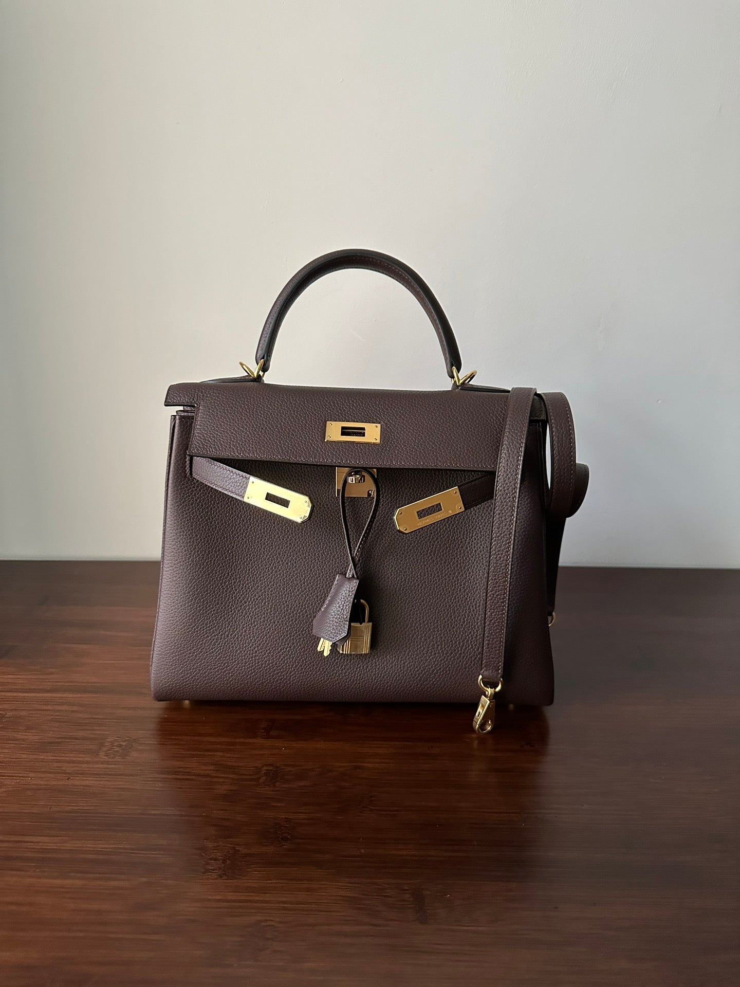 HM KELLY BAG IN BROWN TOGO GOLD HARDWARE
