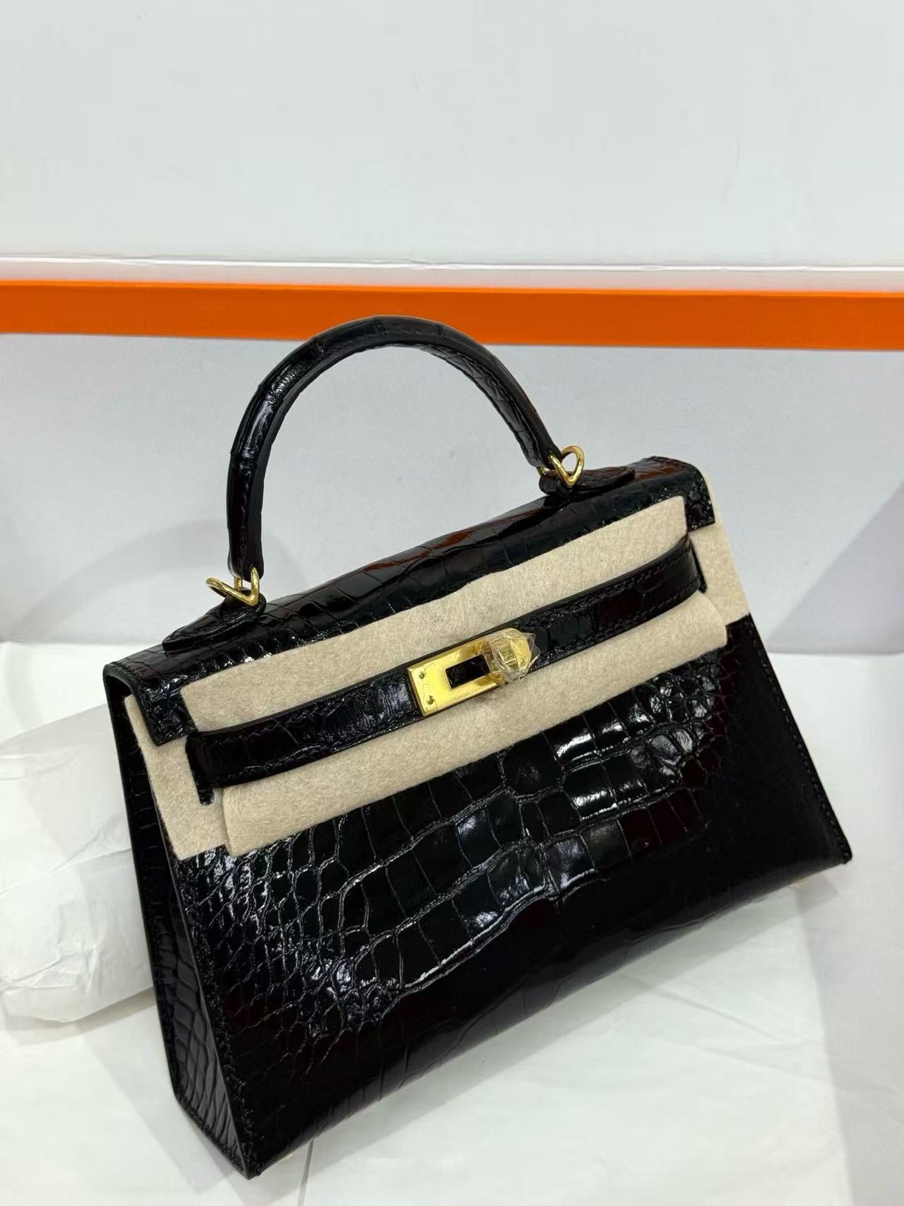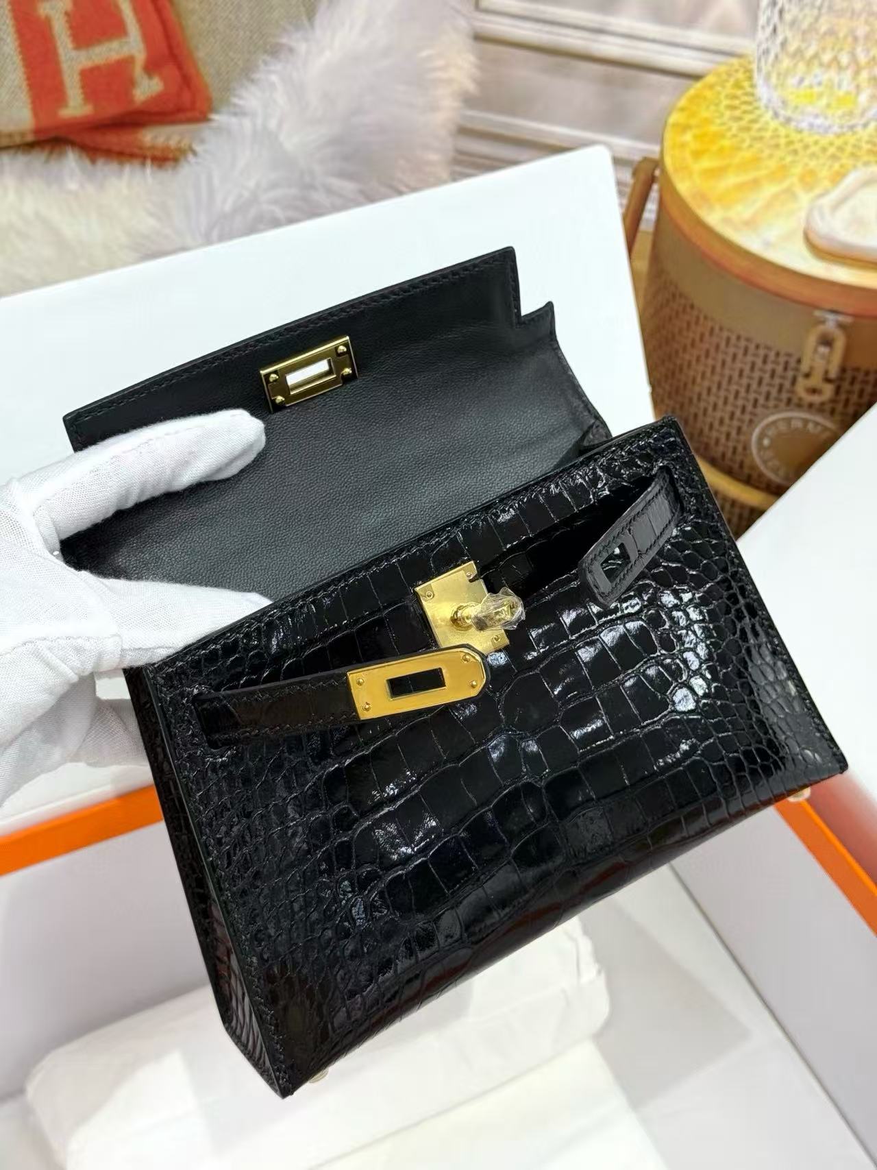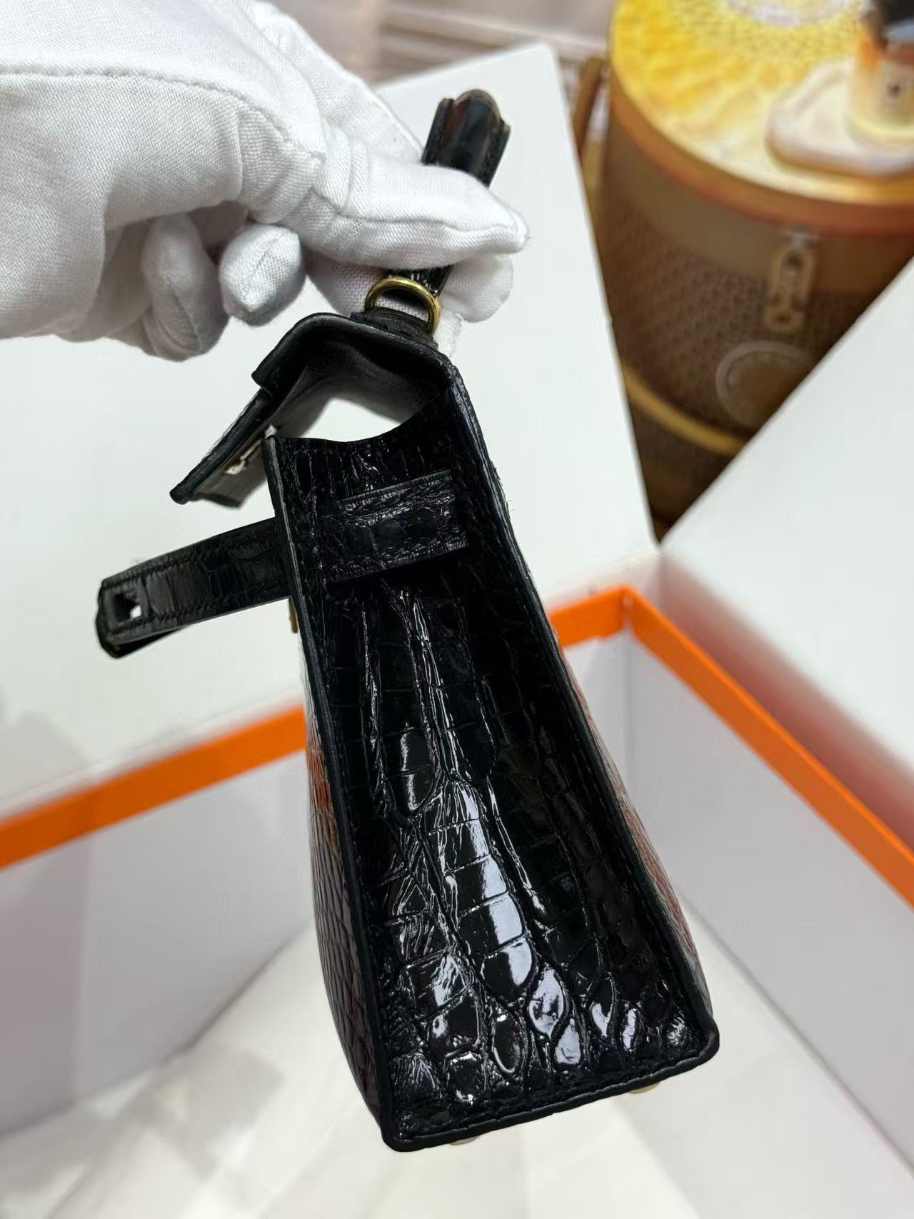 Hermès Kelly II Sellier Mini Black Shiny Crocodile Gold Hardware