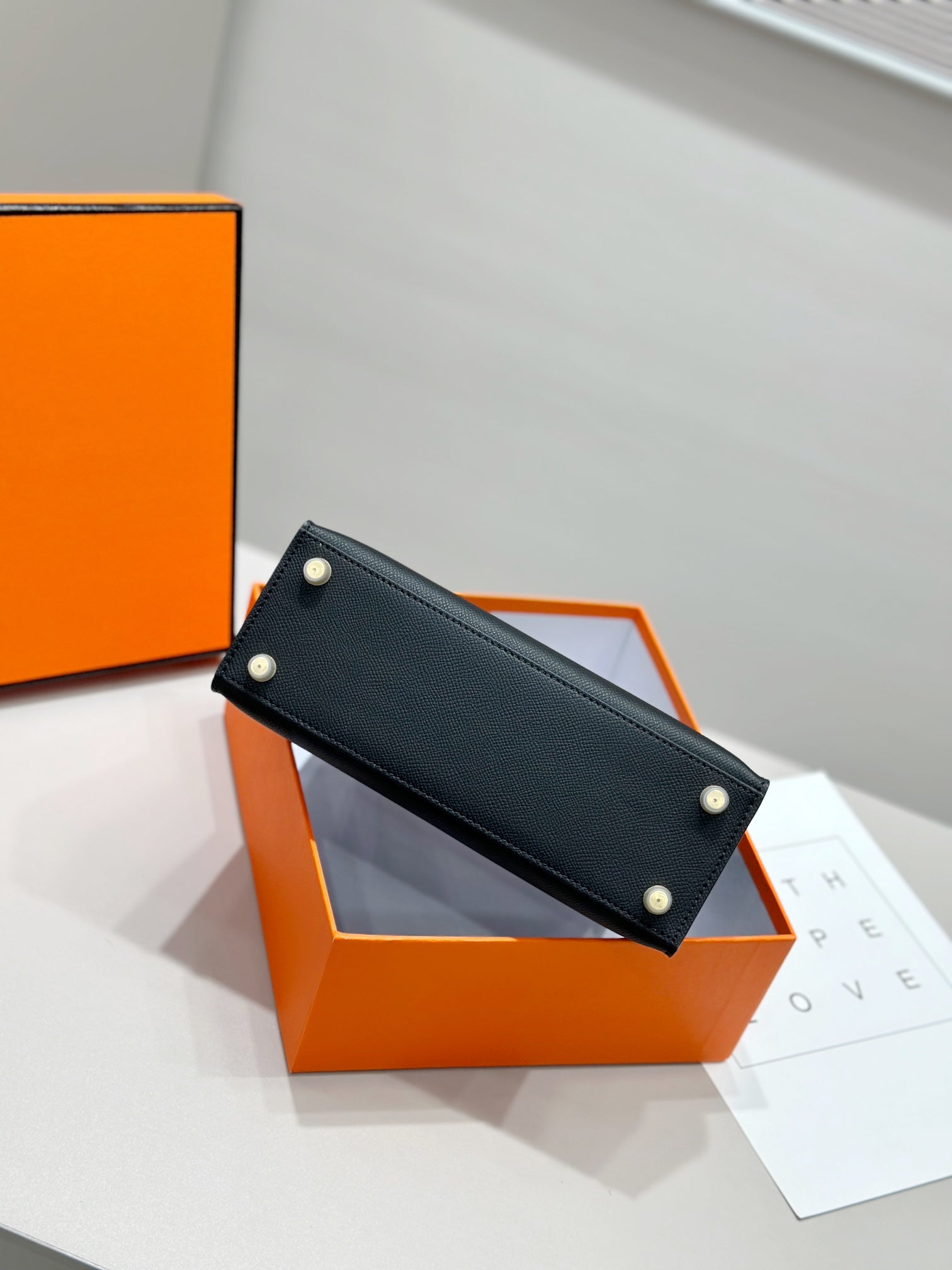 HM Mini Kelly 20cm Black Togo Leather Silver Hardware