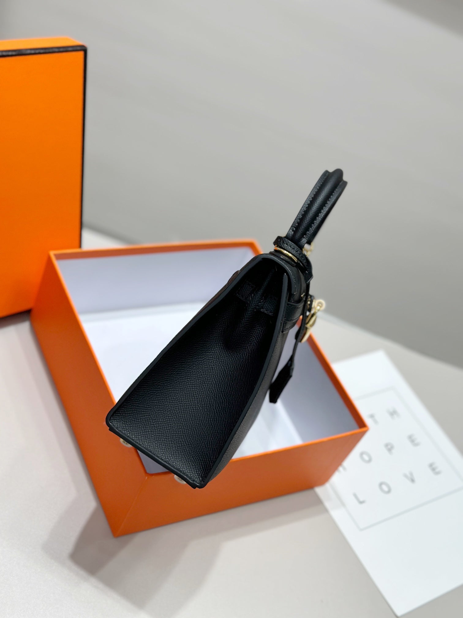 HM Mini Kelly 19cm Black Epsom Gold Hardware