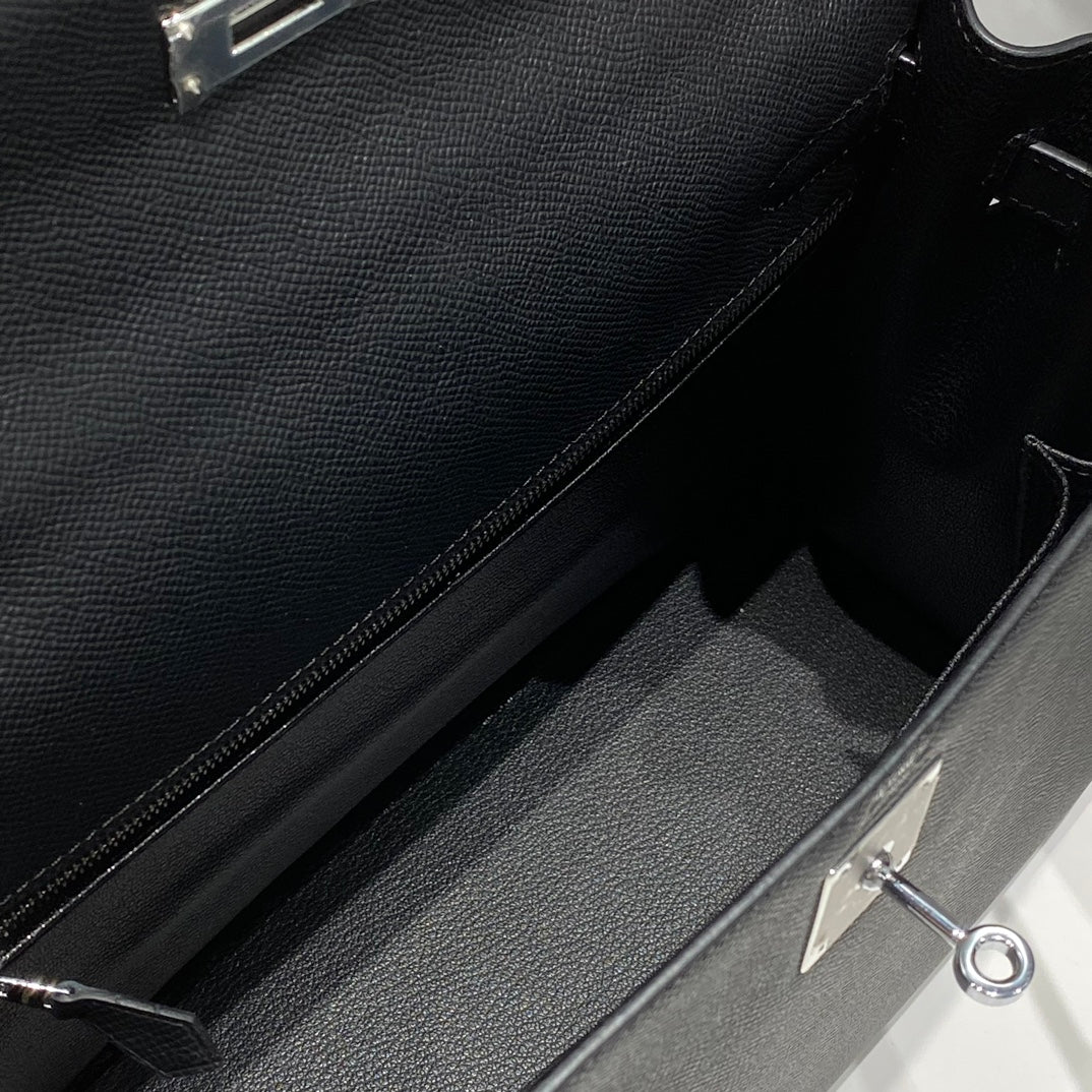 HM Mini Kelly 19cm Black Epsom Silver Hardware