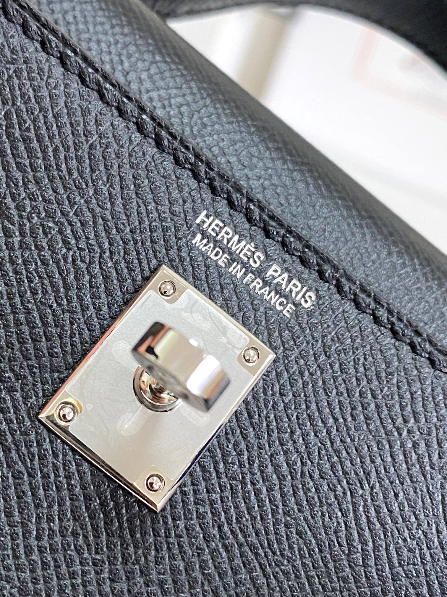 HM KELLY MINI 20 BLACK EPSOM SILVER HARDWARE