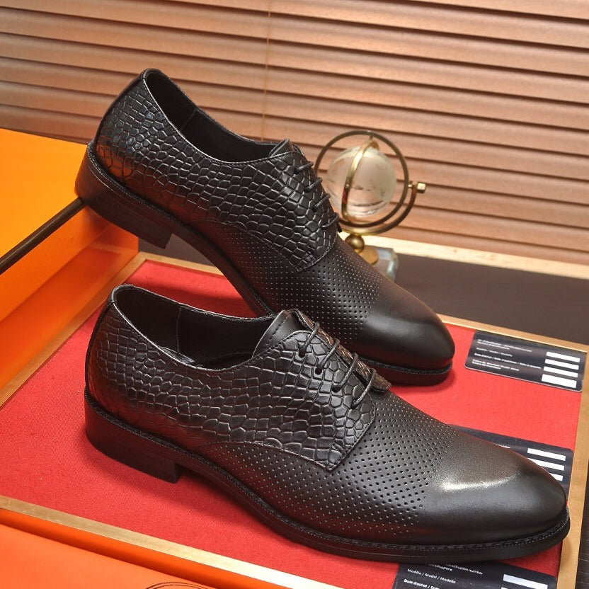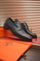 HM BUSINESS LACE UP SHOES BLACK CALFSKIN WITH MESH MOTIF